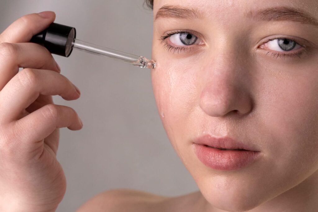 Niacinamide serum for oily skin is an absolute game-changer. That’s because it signals the glands responsible for sebum secretion to form less of it. It also stops sebum from reaching the skin. According to this study, after 2-4 weeks of 2% niacinamide use, sebum production drops by a large amount.